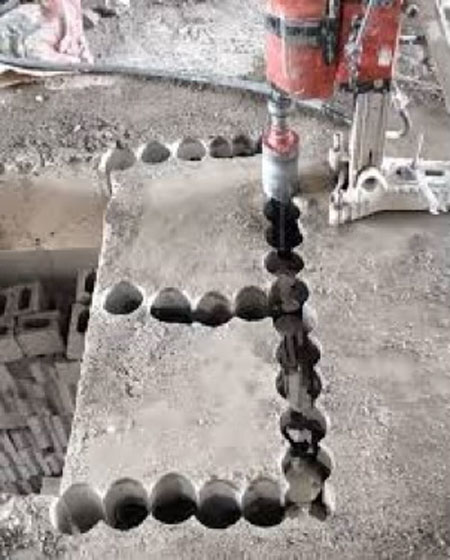 - ایجاد مسیر عبور لولهها و کابلها: در پروژههای تاسیساتی برای عبور لولههای آب، گاز، برق، تهویه و غیره، نیاز است تا سوراخهایی دقیق در کف، سقف یا دیوارهای بتنی ایجاد شود.